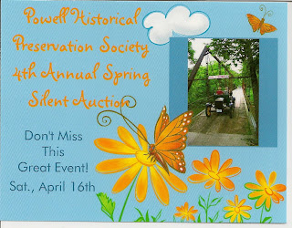 Come join in the fun at the 4th Annual Spring Auction for the Historic Powell Bridge, April 16 from 1 p.m. to 3 p.m.. Bid on some of the great items, buy a delicious baked good, and sign up for the raffle and door prizes. We appreciate, your support of the Grand Ole' Lady of Powell